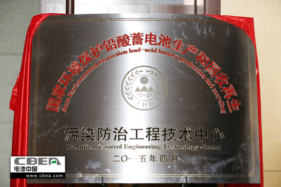 2015年6月13日,“国家环境保护铅蓄电池生产和回收再生污染防治工程技术中心”挂牌成立仪式在浙江长兴举行。国家发改委环资司副司长赵鹏高、工信部节能司副司长杨铁生、环保部科技司巡视员刘志全、浙江省环保厅副厅长卢春中等领导,以及百余名铅蓄电池和再生铅行业的专家学者、企业负责人等出席了成立仪式。