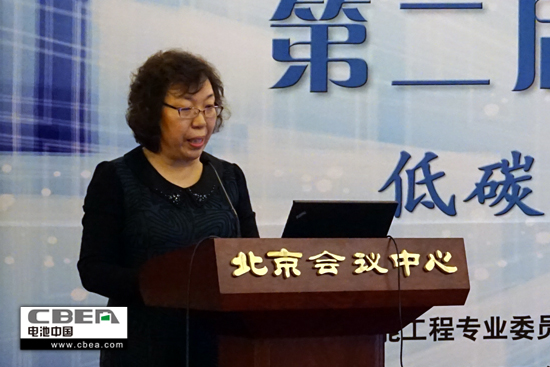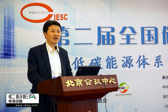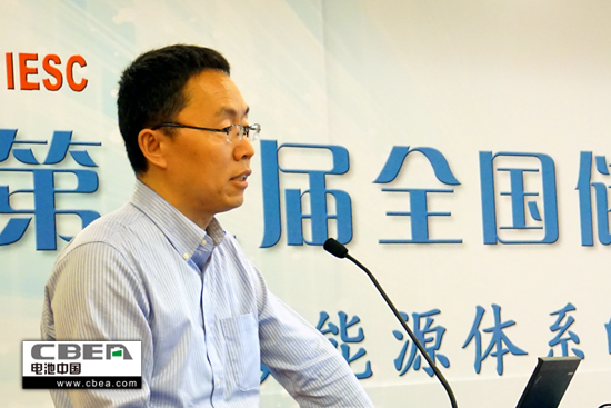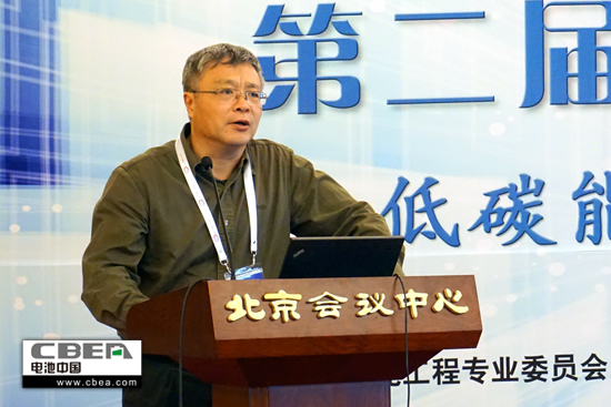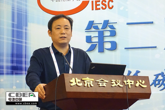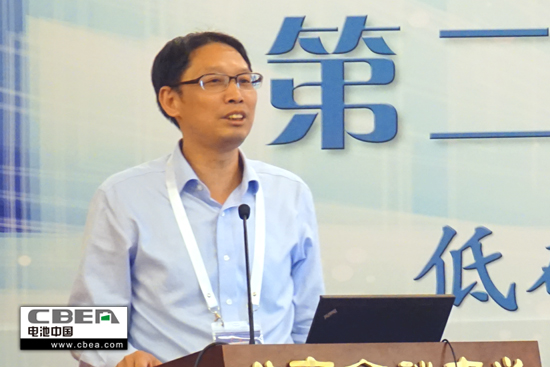 图为中国科学院物理研究所研究员李泓在会上做主题演讲