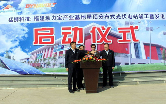图为猛狮科技福建动力宝产业基地分布式(屋顶)光伏电站竣工仪式现场