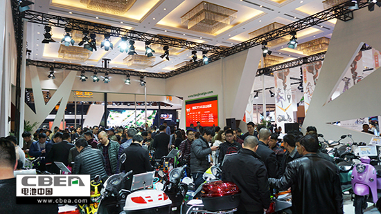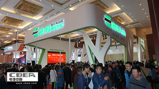 图为赛鸽电动车展位现场人气火爆