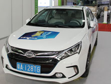 新闻摘要:2014高工锂电展于2014年9月26日-28日在中国进出口商品交易会(广交会)琶州展馆举办,图为比亚迪产品秦。