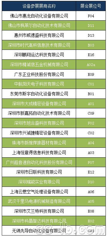 附:部分设备参展展商名单