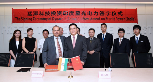 2015年5月30日,广东猛狮电源科技股份有限公司(以下简称“猛狮科技”)投资印度星光电力系统有限公司(以下简称“星光电力”)签约仪式在猛狮科技举行,猛狮科技董事长兼总裁陈乐伍先生与星光电力股东代表Mr. Sachin Shridhar签署了合资合作协议。