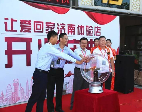 9月20日,猛狮科技让爱回家首家北方城市O2O产品体验店在济南隆重开业。这是猛狮科技继汕头和武汉体验店之后,又一开门红活动!猛狮科技副总裁张宝忠、猛狮科技电商事业部总裁李俊峰以及众多经销商、电商代表共百余人到场祝贺。