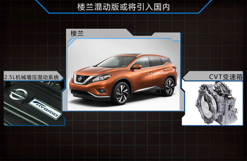 日产全新一代楼兰在今年纽约车展中已正式发布,该车与今年上市的新一代奇骏均基于全新的CMF模块化平台打造,采用全新的家族式前脸设计。在动力方面,该车搭载的是经过重新调校的3.5L发动机,并且还将推出日产全新研发的2.5L机械增压混动系统。鉴于日产品牌目前在华市场混动产品线尚属空白,该车作为旗舰SUV车型,上市之后将有望引入国内销售。