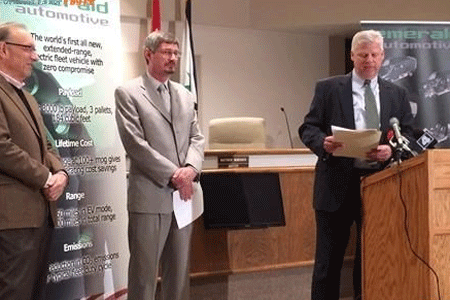 据华尔街日报报道,Emerald公司已开发出两款厢式送货电动车的样车,打算在美国密苏里州黑泽尔伍德(Hazelwood)的一家工厂进行生产。Emerald公司的发言人马步尔(GaryMarble)还表示,之前从密苏里州和黑泽尔伍德市获得的贷款约为500万美元。