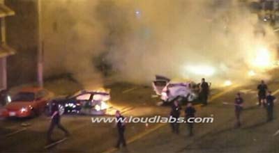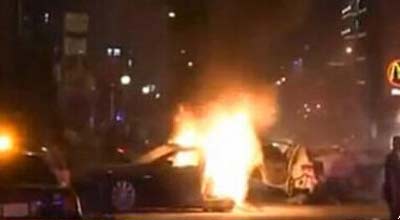 这辆被盗的特斯拉在追逐中撞上两辆轿车,特斯拉的司机和另一辆本田轿车中的五人在碰撞中受伤。特斯拉的锂电池爆炸起火,一些人开始误以为是美国独立日的庆祝。“我们本来以为是放鞭炮,大家都以为是放鞭炮,而不是爆炸。”