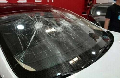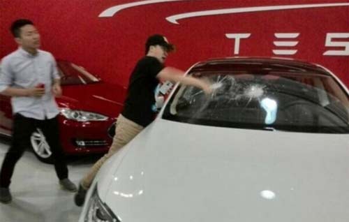 于鑫泉早已没有了当初的兴奋。从特斯拉销售人员手中接过车钥匙之后,他迅速打开车前盖,拿出做牵引车辆用的黑色钩子,向崭新的特斯拉Model S挡风玻璃狠狠地砸了下去。现场所有人都愣住了。