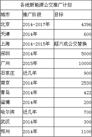 国内多地正在迎来公交"换车潮"。基本上每个省份都出台了公交车新能源化的战略排期。北京计划2014—2017年,推广更新4396辆新能源公交车;上海市计划在2014—2015年间,超六成公交车变为新能源车;广州市计划在2015年之前推广10000辆电动公交……而前不久辽宁省抚顺市作为不享受国家补贴的非试点城市,一次性采购600台宇通新能源公交,更是掀起了公交车“换车潮”的小高峰。有机构预测,到2015年中国公交车保有量会达到60万辆,而新能源公交车的保有量则会增长到8.3万辆,占比达到13.8%。