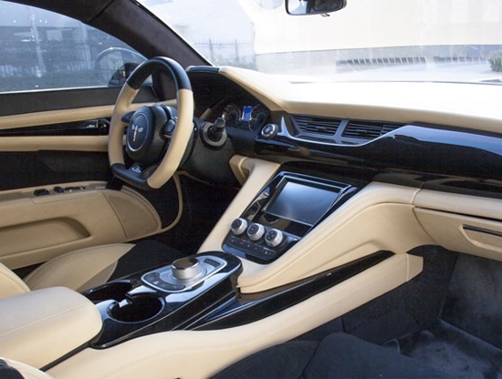 在内饰方面,“前途”大面积的真皮材质更像是传统跑车,配色设施也同样流露奢华格调。旋钮换挡再次让人联想起捷豹的跑车,据称触屏显示器在量产时也将进化,大小将接近测试车触屏的两倍,这样的设计也让这款“前途”看上去科技感十足!
