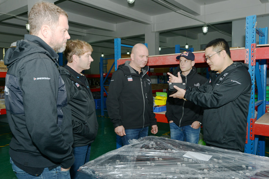 猛狮科技董事长陈乐伍(右一)为桑德罗一行进行技术讲解