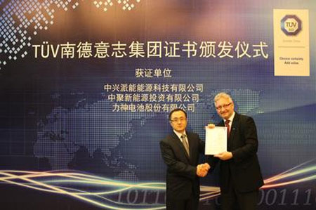 天津力神储能电池LP2770134获TUV 南德认证证书