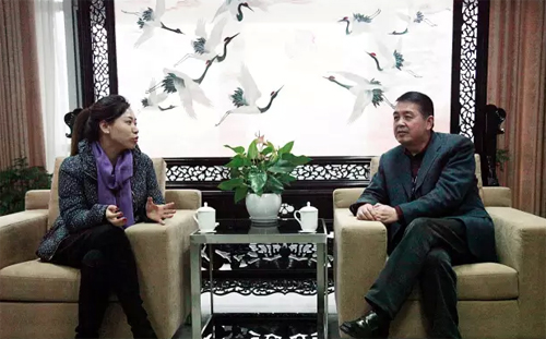 图为万马联合控股集团副董事长张珊珊与中国电信浙江公司副总经理张涛