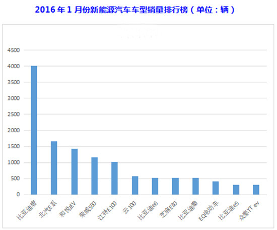 从已知数据看来,2016年1月份新能源汽车的销量如下: