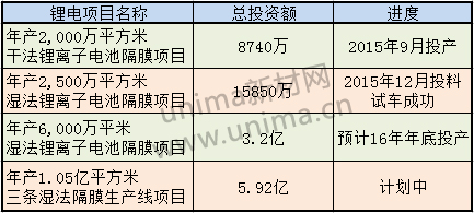 重庆云天化纽米科技有限公司成立于2010年2月,位于重庆长寿经济技术开发区。2015年隔膜销售额为1.5亿元,毛利率为25%。