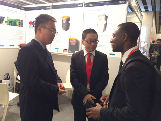 华为海外产品经理Leroy前往Shoto展台了解Shoto新产品新技术发展情况