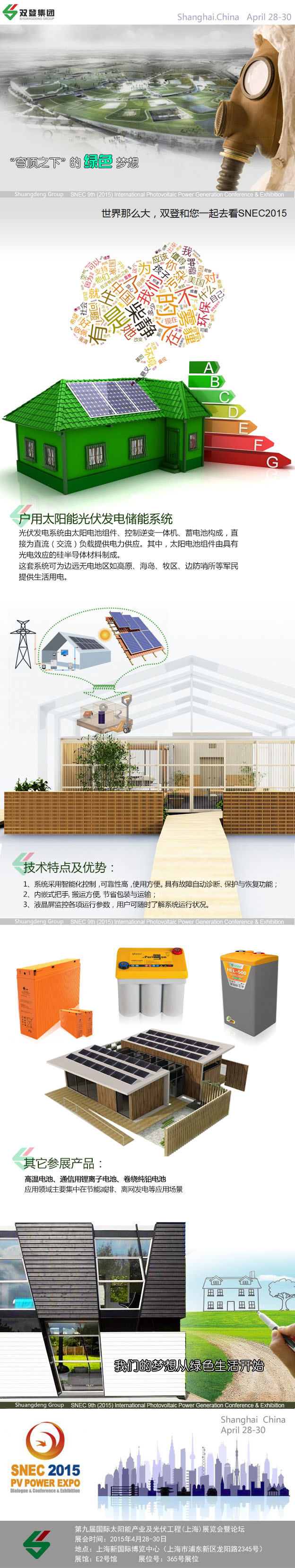 [摘要]2015年4月28-30日,上海新国际博览中心即将举办SNEC第九届(2015)国际太阳能产业及光伏工程(上海)展览会及论坛(SNEC PV POWER EXPO 2015)。定位于“大数据时代领先的绿色储能集成服务供应商”的双登集团,将携多种新能源产品盛装亮相,与您一起追寻穹顶之下的绿色梦想。