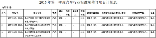 1月19日,工信部公开征集对《电动汽车用IGBT模块环境试验要求及试验方法》等233项行业标准、10项国家标准计划项目的意见。其中电动汽车行业标准计划项目共有三项,分别为《电动汽车用IGBT模块环境试验要求及试验方法》、《电动汽车驱动电机系统噪声测定方法及限值》、《电动车辆充电耦合系统的电磁兼容性要求和试验方法》。