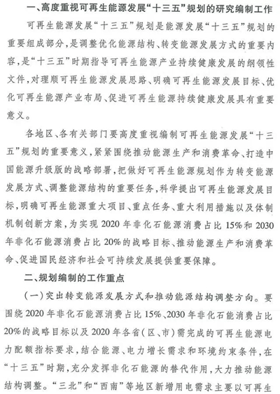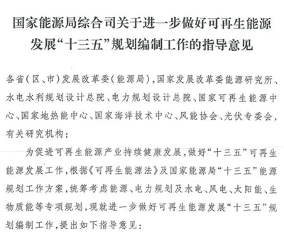 国家能源局综合司关于进一步做好可再生能源发展“十三五”规划编制工作的指导意见,内容如下: