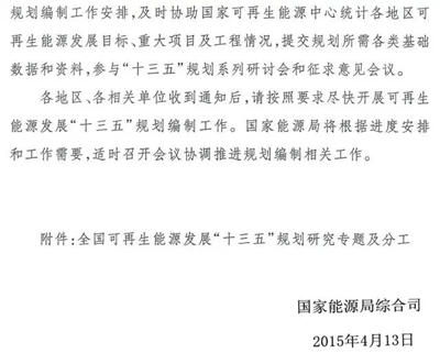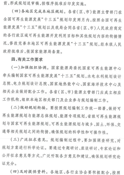 ]国家能源局综合司近日下发了关于进一步做好可再生能源发展“十三五”规划编制工作的指导意见。