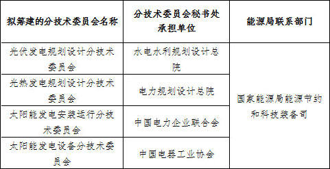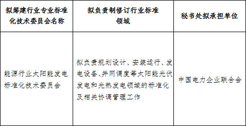 能源行业太阳能发电标准化技术委员会拟筹建方案