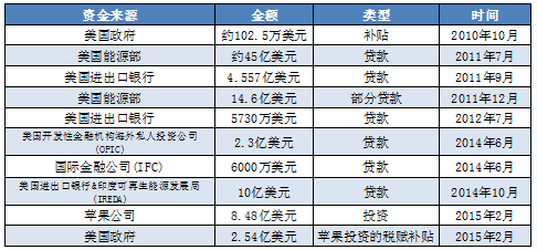 以美国最大的薄膜太阳能企业First Solar为例,笔者统计公开报道的数据发现,近五年来这家公司共收到美国政府各类补贴和贷款总额近90亿美元(下图)。与此同时,另一家太阳能企业Solarcity,这些年也获得政府约25亿美元税收优惠、补贴和政策性贷款。