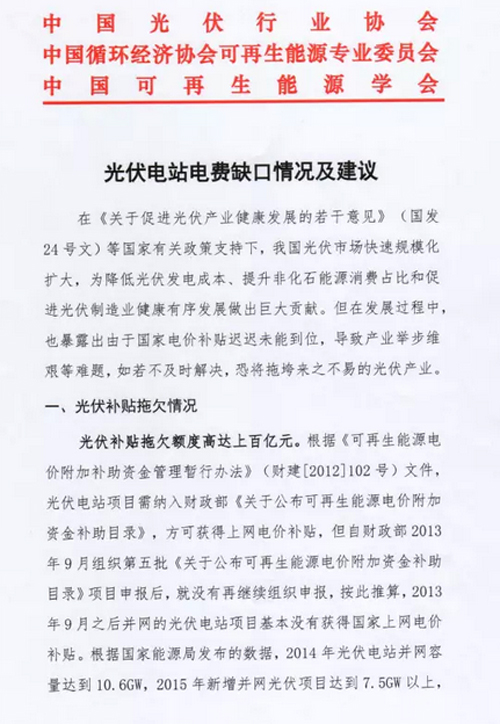 [摘要]作为中国最具影响力的三大光伏行业协会:中国光伏行业协会、中国循环经济协会可再生能源专业委员会、中国可再生能源学会联名提交有关促进光伏行业发展的三大政策文件。