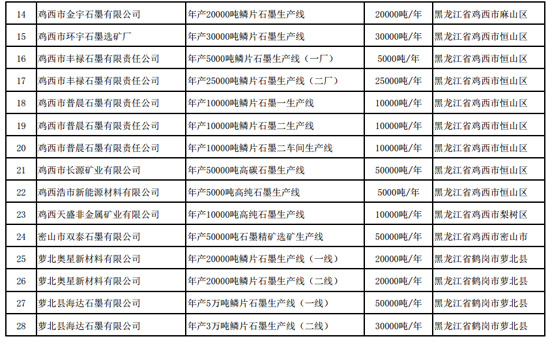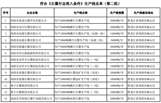 附件:符合《石墨行业准入条件》生产线名单(第二批)