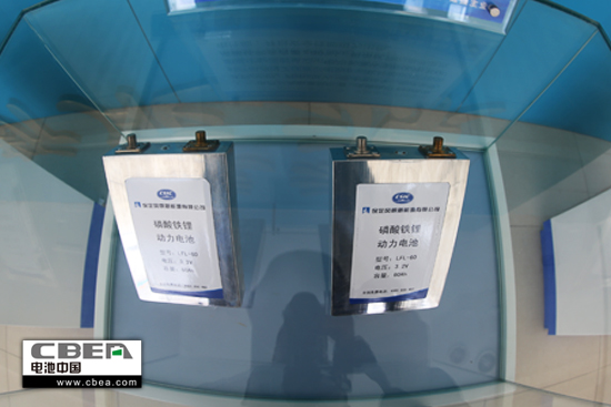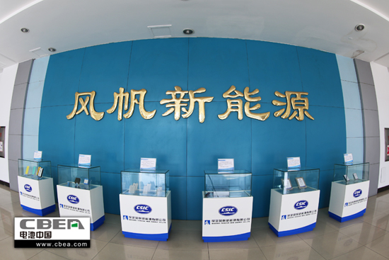 图为风帆新能源有限公司内展示的锂离子电池样品