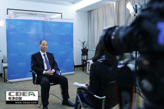 图为风帆股份销售公司副总经理王荣军接受采访
