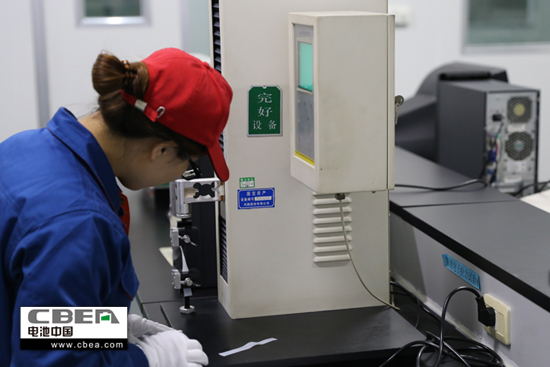 图为风帆股份锂电实验室中的工作人员正在进行相关检测