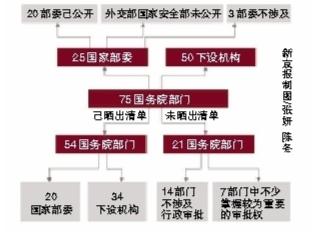 其余7个未公开的部门,有外交部、国家安全部这两个国家部委,以及国务院5个下设机构,这5个机构中不少掌握较为重要的审批权,如海关总署、国家工商行政管理总局、国家中医药管理局。