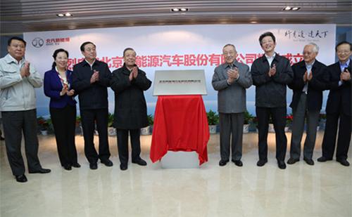 3月21日,国内首家股份制新能源公司“北京新能源汽车股份有限公司”(以下简称“北汽新能源”)在北京大兴挂牌成立。新设立的北汽新能源股份公司注册资本20亿元人民币,是由北汽集团联合北京工业发展投资管理有限公司、北京国有资本经营管理中心和北京电子控股有限责任公司等单位共同出资组建,北汽集团以60%的股权成为控股股东。股份制新能源公司的成立是北汽集团产业转型升级的又一重要战略,标志着北汽集团在新能源汽车领域的发展驶入快车道,同时也彰显了北京市引领发展新能源汽车产业的决心和大胆突破。当天,前中共中央政治局常委、国务院副总理李岚清,原国务院发展研究中心党组书记、副主任陈清泰,原全国政协委员、文化部副部长赵维绥,国务院发展研究中心研究员、著名经济学家吴敬琏,北京市委常委、秘书长赵凤桐,北京市副市长张工等领导视察了北汽新能源公司。