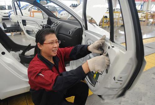 总装车间技术工刘希兰正在安装电动车