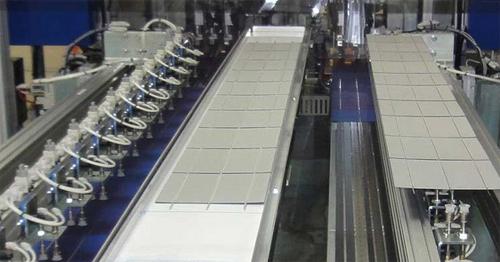 太阳能电池模块的制造工序之一是将多个太阳能电池单元串联在一起。该工序用很细的TAB线将太阳能电池单元表面的母线电极和相邻的太阳能电池单元的背面电极连接在一起。大多使用焊锡来连接。