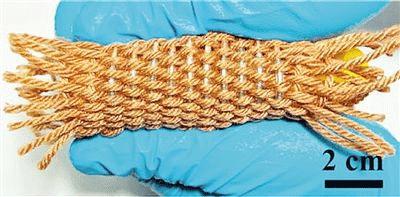 纤维状全锂离子电池可被织成衣服为可穿戴式电子产品供电。美国化学学会提供
