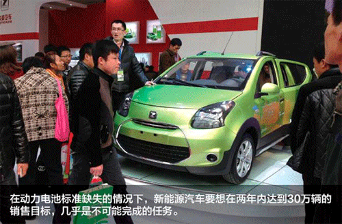 在动力电池标准缺失的情况下,新能源汽车要想在两年内达到30万辆的销售目标,几乎是不可能完成的任务。