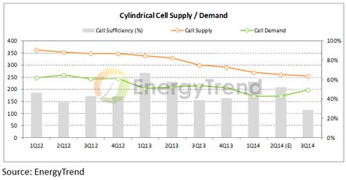 ▲圆柱形电池供需状况(图片来源:EnergyTrend)