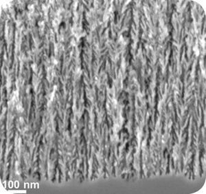 纳米级多孔表面性能可实现高效率的电荷储存,而多孔材料仍使电气和机械上保持与底部看得见的大块电极连接。