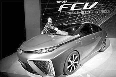 所谓燃料电池汽车,是使气罐内的氢气与空气中的氧气在车载电堆中发生反应来发电,进而推动车辆行驶的。燃料电池汽车因其终极的环保特性(排放物是水),被很多人认为是汽车工业的最终形态。2013年东京车展,丰田在全球首次公开了预定上市销售的燃料电池车。