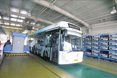 记者日前来到这个充换电站的建设现场,在一座两层高的“黄房子”里,一辆大客车旁边有多个充电架和换电机器人。据工作人员介绍,充换电站内部的换电机器人具有很强的实用性,充换电站正式使用后,车辆驶入换电通道时,换电机器人依靠对电动公交车电池仓位置的视觉定位,伸出机械手臂取下公交车上待充电的电池,放回电架进行充电。