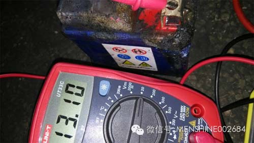 工程技术人员对被火焚烧过的电池进行一系列检测,检测仪器显示电池各项检测数据一切正常,未启动时的电压也达到13.10V,属于正常范围。面对车主及维修店人员的疑惑,技术人员进行解释:“假如是电池导致起火,最有可能是电池内部组装极性相反造成,但猛狮的每只电池出厂都100%通过大电流检测,不会出现这种情况”。为进一步打消客户的疑虑,工程技术人员检测了电池的极性,结果显示电池极性正常。为彻底弄清楚摩托车的启动起火原因,工程技术人员将烧得变形的电池安装上125cc男装摩托车,进行数十次的点火启动测试,电池电压稳定在13.0V左右,负载电压在12.3V左右,启动性能稳定。