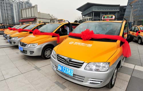 8月24日清晨6点半,在教工路西湖电子集团总部的园区内,10辆西湖新能源电动出租汽车举行发车仪式,其中有两辆车正式上路营运,打车费用与普通出租车一样。