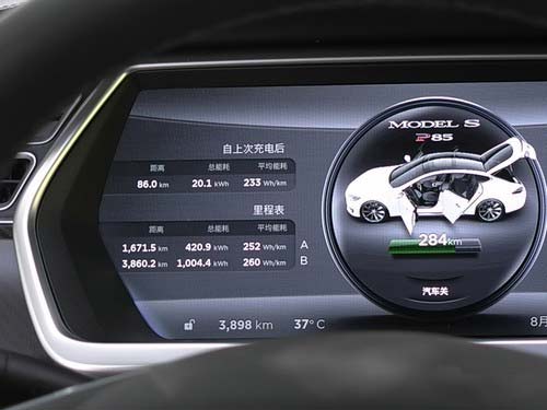 特斯拉的电池及续航管理界面