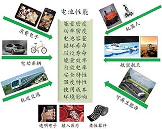 清洁高效的电池技术一直是战略新兴产业的核心关键技术之一。特别是近年来,随着消费电子、电动交通工具、基于太阳能与风能的分步式能源系统、电网调峰、储备电源、绿色建筑、航空航天、机器人、国家安全等领域的飞速发展,迫切需要具有更高能量密度、更高功率密度、更长寿命的可充放储能器件。实际上,从铅酸电池、镉镍电池、镍氢电池,到锂离子电池,化学电源技术在过去200年取得了长足发展,能量密度也不断提高。与其它蓄电池比较,锂离子电池具有能量密度高、能量效率高、循环寿命长、无记忆效应、快速放电、自放电率低、工作温度范围宽和安全可靠等优点,成为世界各国科学家努力研究的重要方向。