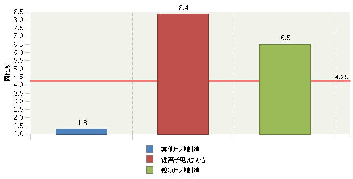 图8: 2014年1~6月全国电池行业累计主营业务收入行业小类同比增长情况