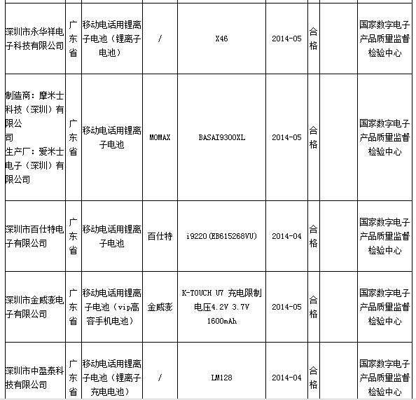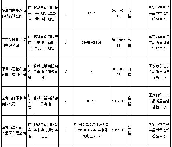 国家质检总局17日公布的2014年第2季度移动电话用锂离子电池产品质量国家监督抽查结果显示,不合格产品检出率为10.7%,不合格产品检出率同比上次抽查高出了2.1个百分点。