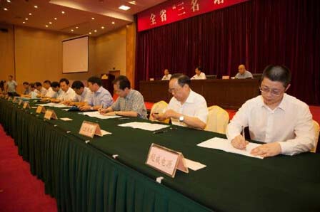 9月28日下午,以“名企、名品、名家 ”为内容的浙江省“三名”培育工程建设推进会在杭州召开,标志着全省“三名”培育工程正式启动。超威集团入选全省首批“三名”培育工程试点企业,并与巨化集团、万丰奥特等5家企业在大会上表态发言。副省长毛光烈发表了重要讲话,并作了专题讲座。讲座中,他以超威为例,高度评价了超威集团研发的智能电池,称赞超威智能电池项目代表了浙江智能化建设的首个突破。