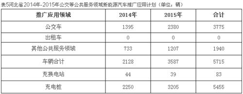 充电设施:到2015年底,河北省12个城市计划共建设83座大型标准化充电站、5455个充电桩,对于新能源公交车配套基础设施,纳入公交车场站建设规划;同时,在今后的城市居住建筑及大型公共建筑设计和建设过程中,充分考虑新能源汽车的充电需求,预留充电接口。