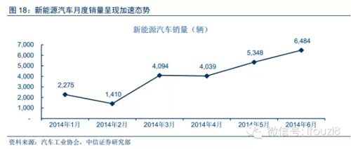 新能源汽车月度销量呈现加速态势,预计年底有望达到月销万辆的水平。今年上半年新能源汽车累计销售2.1万辆,已经超过去年全年的1.7万辆,而且月度销量呈现加速态势,其中6月单月销量已经超过6000辆,预计年底有望达到月销万辆的水平。